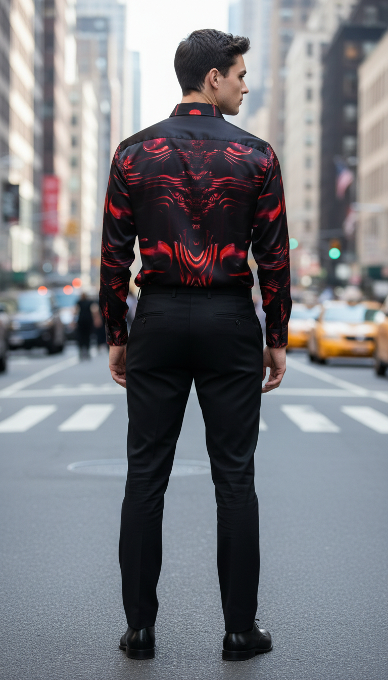 Camisa colección satin estampado basado en un estilo artístico