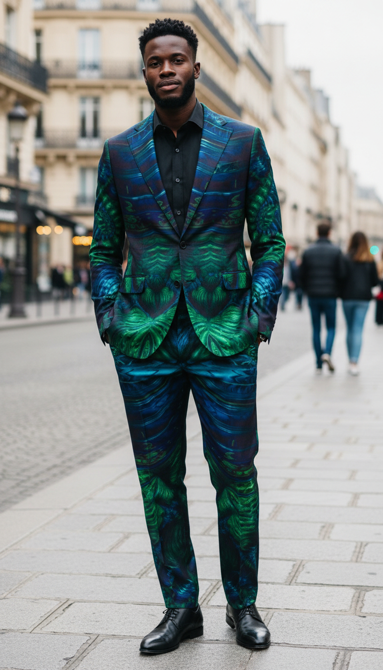 Traje colección mate estampado basado en un estilo artístico