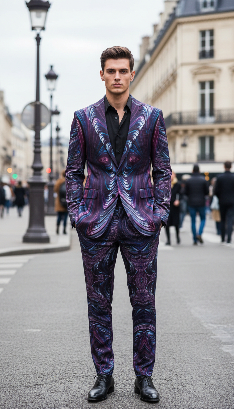 Traje colección mate estampado basado en un estilo artístico