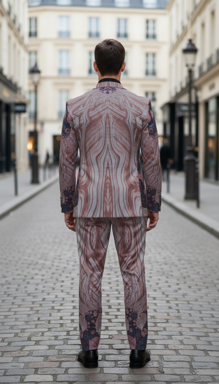 Traje colección mate estampado basado en un estilo artístico